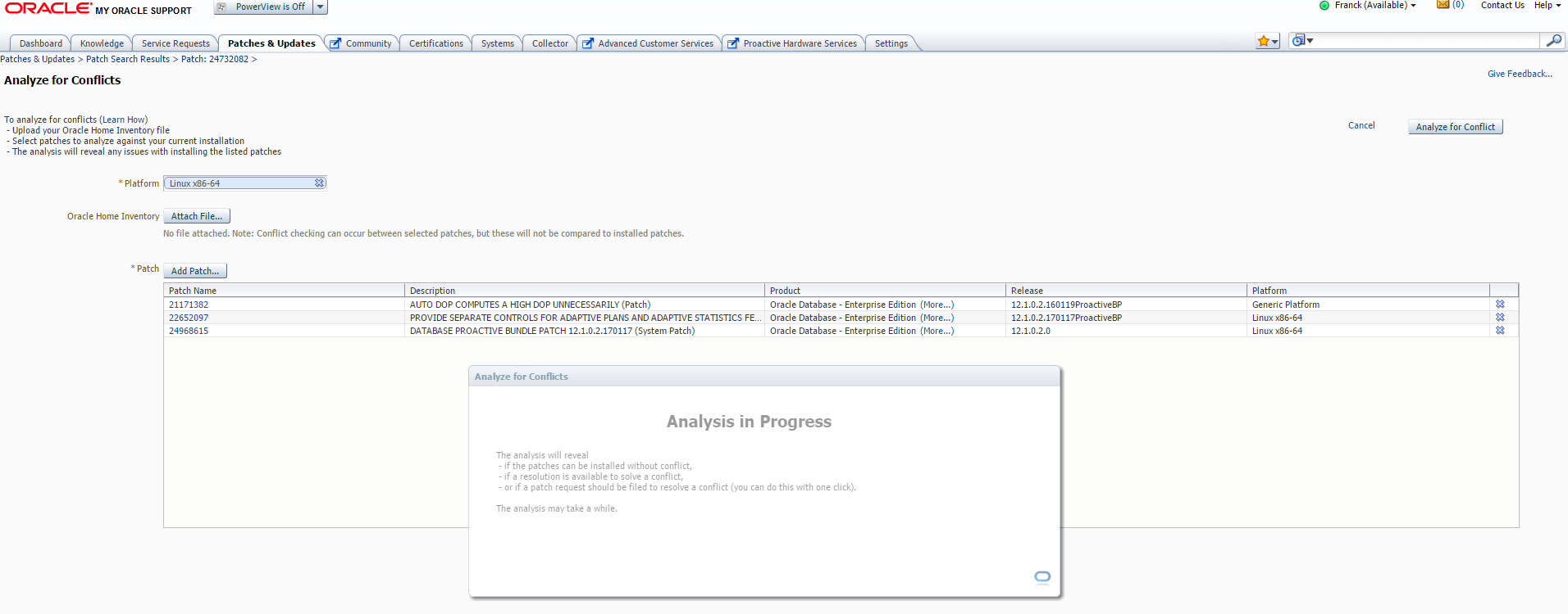 Before trying it, we can check conflicts in MOS. Here are the 3 patches I would like to apply, in their most recent release for Linux: