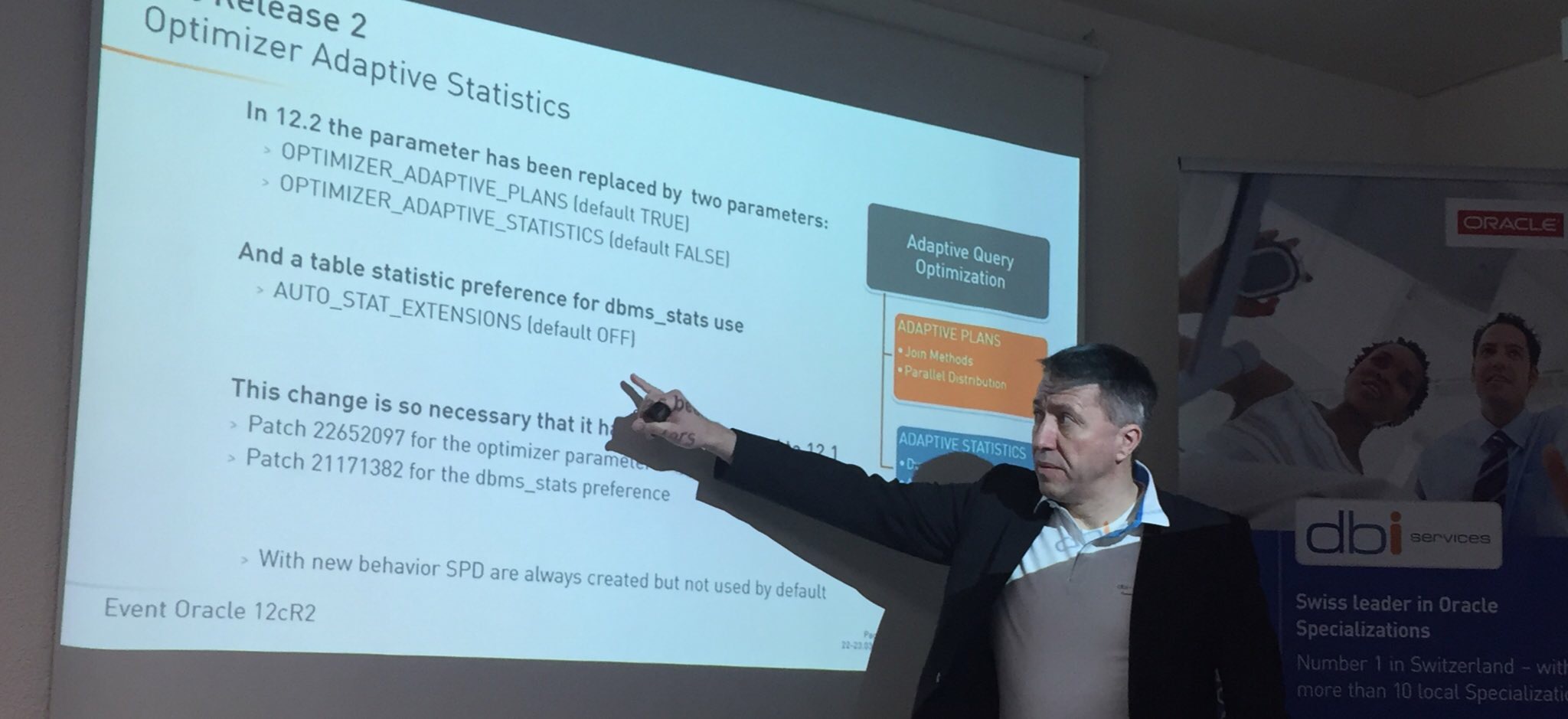 This Month, the 12cR2 was released and we immediately informed our customers about the new features that we think are important to know in order to plan when to go to 12.2 and for which projects. We started with the most important one, the Adaptive Statistics which helps to avoid all those performance issues encountered after migrating to 12cR1. We also mentioned that this new behavior has been backported to 12.2 with two patches, as explained here by Clemens Bleile: